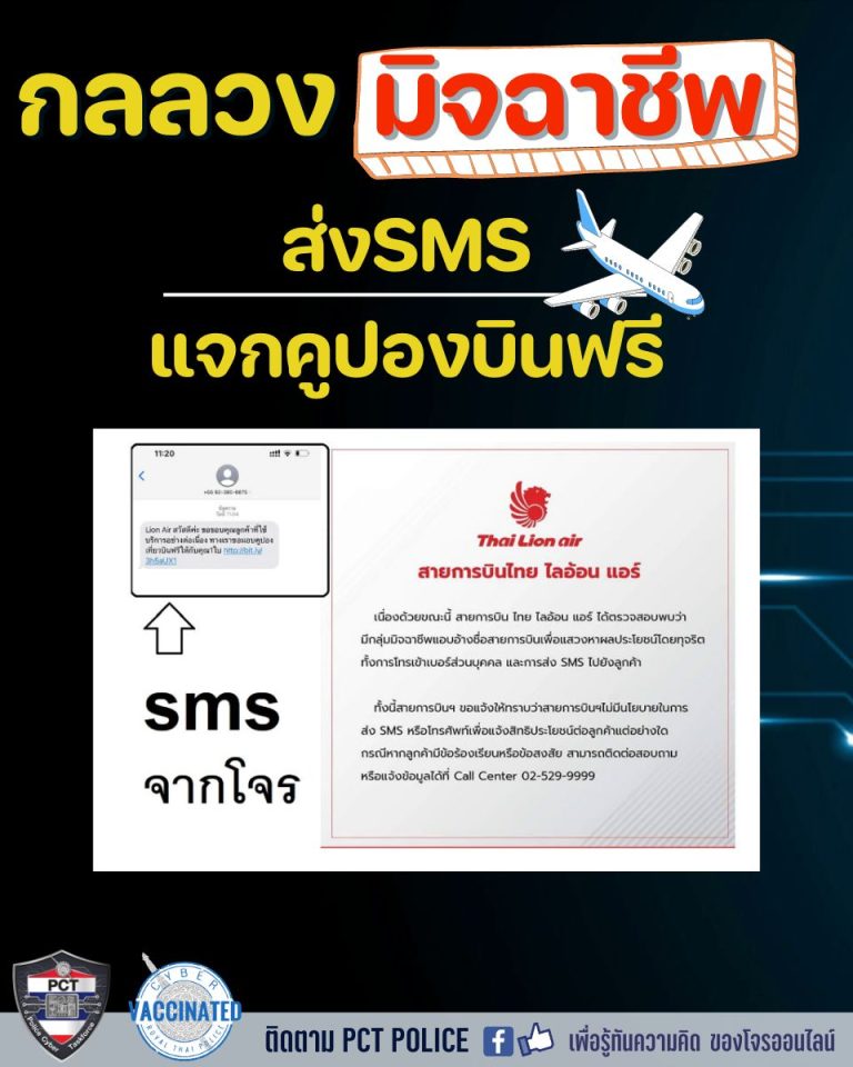 ขณะที่ สายการบินไลอ้อน แอร์ ออกหนังสือชี้แจง หลังจากโดนแอบอ้างชื่อ ระบุว่า เนื่องด้วยขณะนี้ สายการบิน ไทย ไลอ้อน แอร์ ได้ตรวจสอบพบว่ามีกลุ่มมิจฉาชีพแอบอ้างชื่อสายการบินเพื่อแสวงหาผลประโยชน์โดยทุจริต ทั้งการโทรเข้าเบอร์ส่วนบุคคล และการส่ง SMS ไปยังลูกค้า