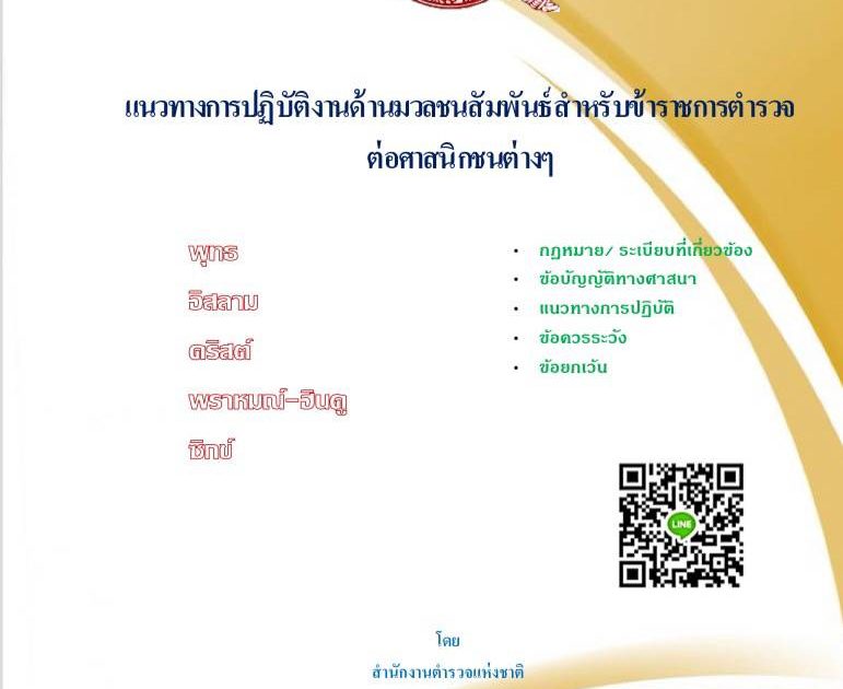 แนวทางปฏิบัติงานด้าน ชมส.สำหรับข้าราชการตำรวจต่อศาสนิกชนต่างๆ