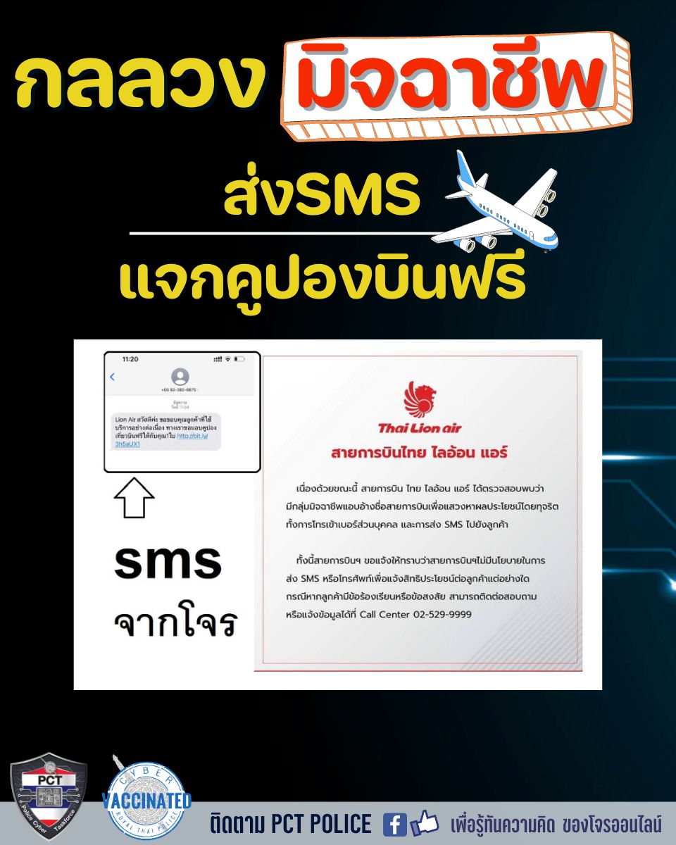 มิจฉาชีพ’ ส่ง SMS แจกคูปองบินฟรี